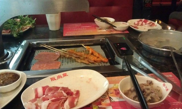 这里的自助餐形式就有2种方式,可以韩式烧烤,也可以打边炉,两者一齐进行。去的时候是晚上刚好看完下午场的电影,等位足足等了1个多小时。晚上每位59元。茶位另外收,3元一位。