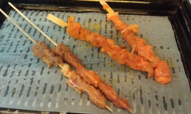 选择好食物后开始自己动手煮吃,烤板上首先会垫上一块吸油纸,不用放油可以直接在上面烤,火候自己控制,想换吸油纸的可以叫服务员过来换,因为通常烤完一种食物,吸油纸都会有少少焦。烤板的温度很高,不小心穿的长袖T恤就被热熔了少少。而且油烟味比较大,很热。而且坐的位置比较狭窄,如果多人来的话会比较不方便。