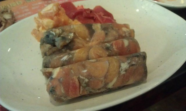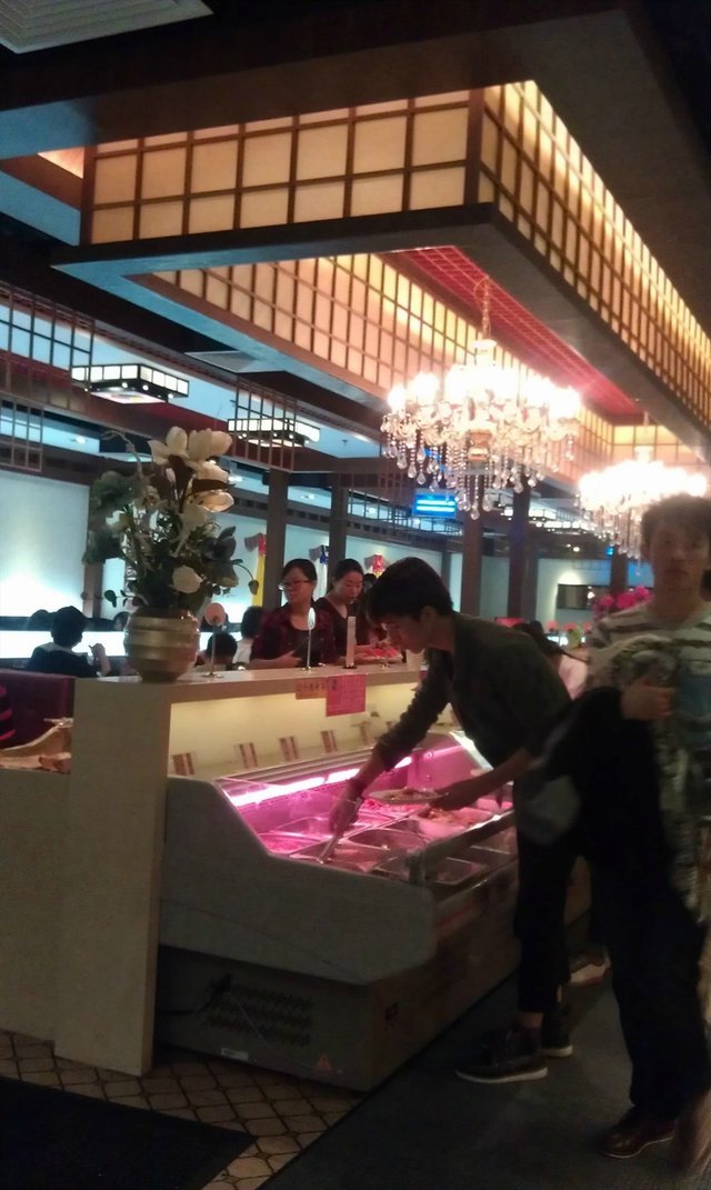 餐厅的环境不算大,门口的位置就放了很多生的食物人均选择,有鸡翅,肉丸,肉片,鱼肉,肉串,火腿,茄子,蔬菜等等,基本上没有海鲜,只有鱼。酱汁配料都几多,也是任拿的。饮品选择不多,就只有2-3款左右。还有寿司和雪糕。但寿司只是普通的青瓜或蛋寿司。