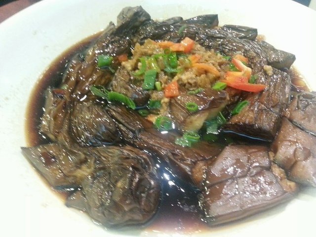 烧茄子:茄子的另外一种做法,将茄子切一段段,但不要切断,红烧后摆成盘龙状,卖相不错,味道也可以,没鱼香茄子的油腻,但味道绝不逊色于鱼香茄子。