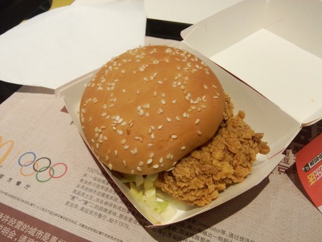 【麦辣鸡腿堡】:鸡肉好大块,食落比较辣,不过都几好食,沙律酱冇肯德基咁多。