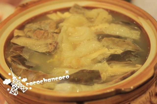 一家人吃饭没有铺张,点了几个小菜,够吃便可。胡椒花胶猪肚煲,大厅与房间的价钱相差50元,服务员贴心告诉我按人数点半份足矣。上菜时终于明白她的用心良苦,分量没有令我失望,汤与料比例得当。腐竹的软滑,猪肚的嫩爽,花胶的柔软,胡椒更能起到点睛之笔,材料在浓郁的汤水中翻腾,既滋阴又养颜。