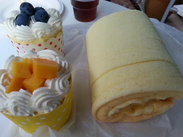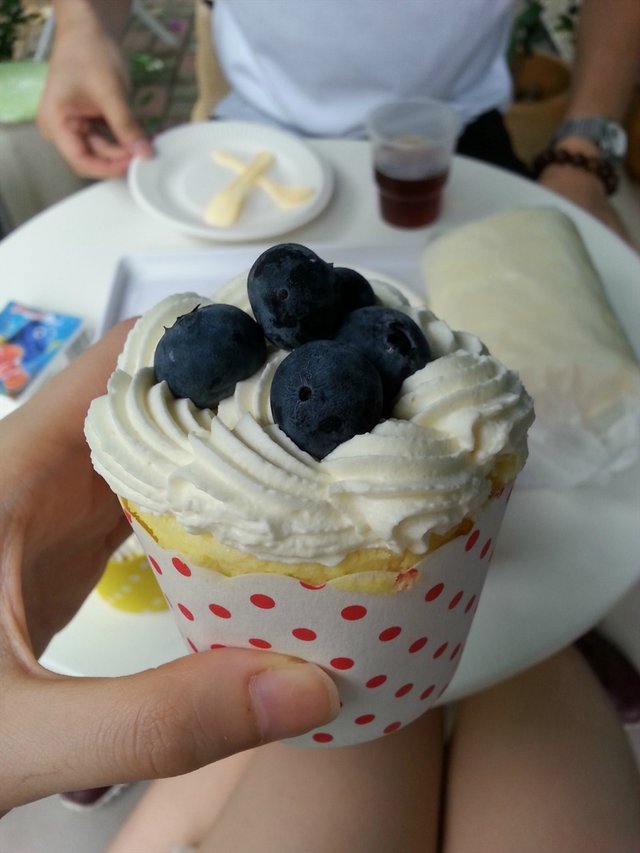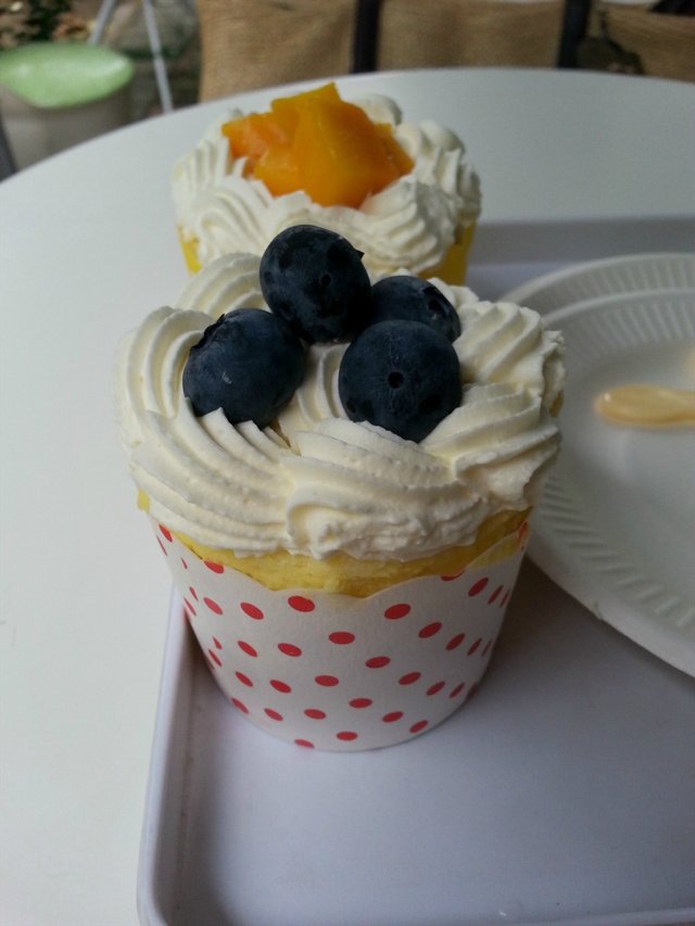 幸好,这里的蛋糕不负所望,味道真不错哦~~我们选了一个蓝莓cupcakes同一个芒果cupcakes~~&一个榴莲手卷