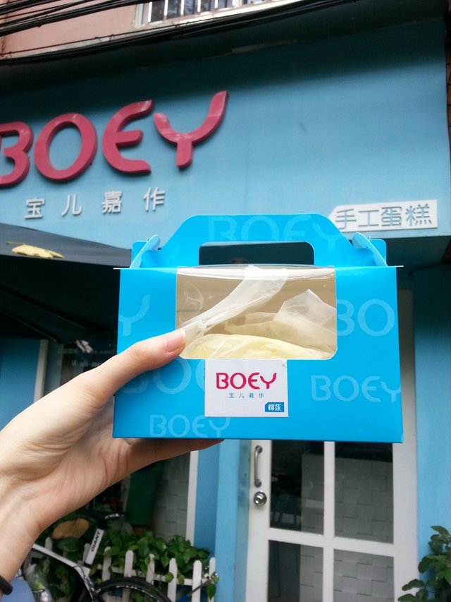 之前上网搜说BOEY宝儿嘉作的手工蛋糕很好吃,于是我们花了大约40min的时间走完整个六运小区终于找到了,本来打算大吃一餐的,没想到竟然落住倾盆大雨仲要这家BOEY宝儿嘉作是没有室内座位的,只有室外的三张小桌子~~不过有一把巨大的伞,边赏雨景边食蛋糕还是挺有情调的
