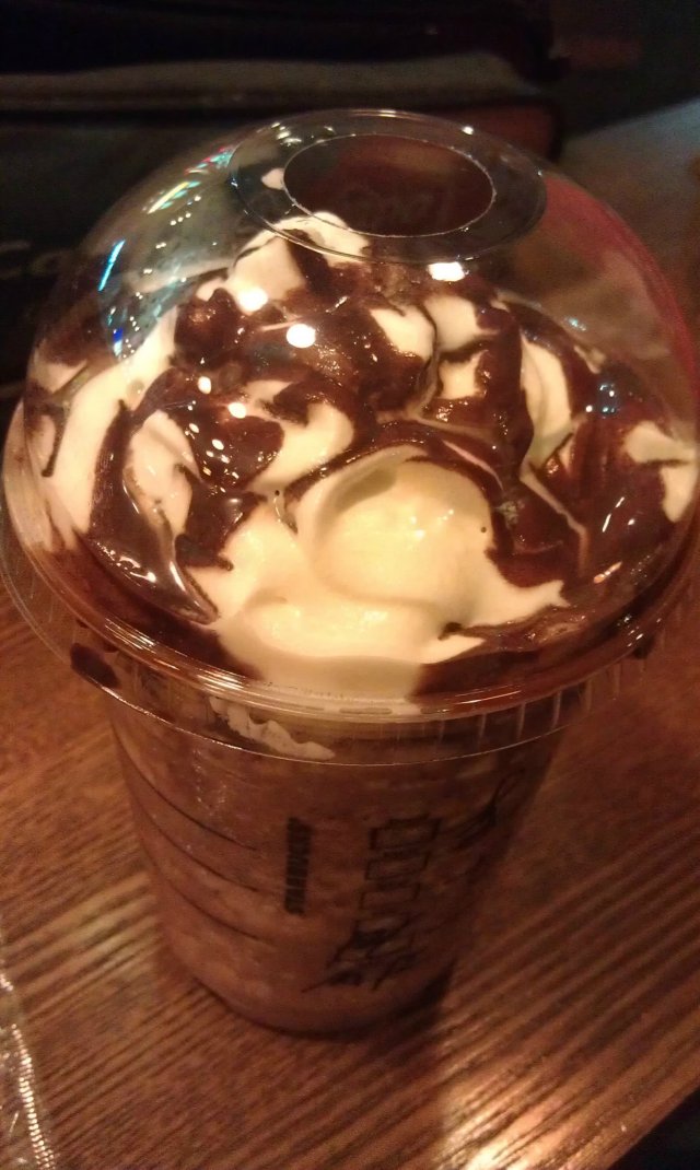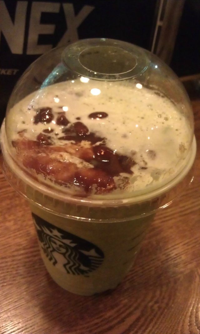 跟朋友一起买了一杯可可碎片星冰乐和新出的抹茶红豆星冰乐。这2杯都是我的大爱。可可碎片星冰乐的巧克力很香浓,配上泡沫状的忌廉,GOOD。另外抹茶红豆星冰乐是新出的,就是本来的抹茶星冰乐加了红豆在里面。红豆配上抹茶,更加香甜。