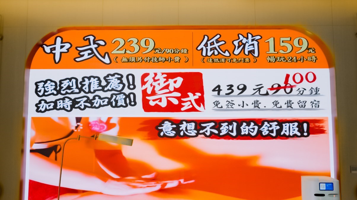 中式按摩:239元/ 90分鐘,無須另付技師小費。