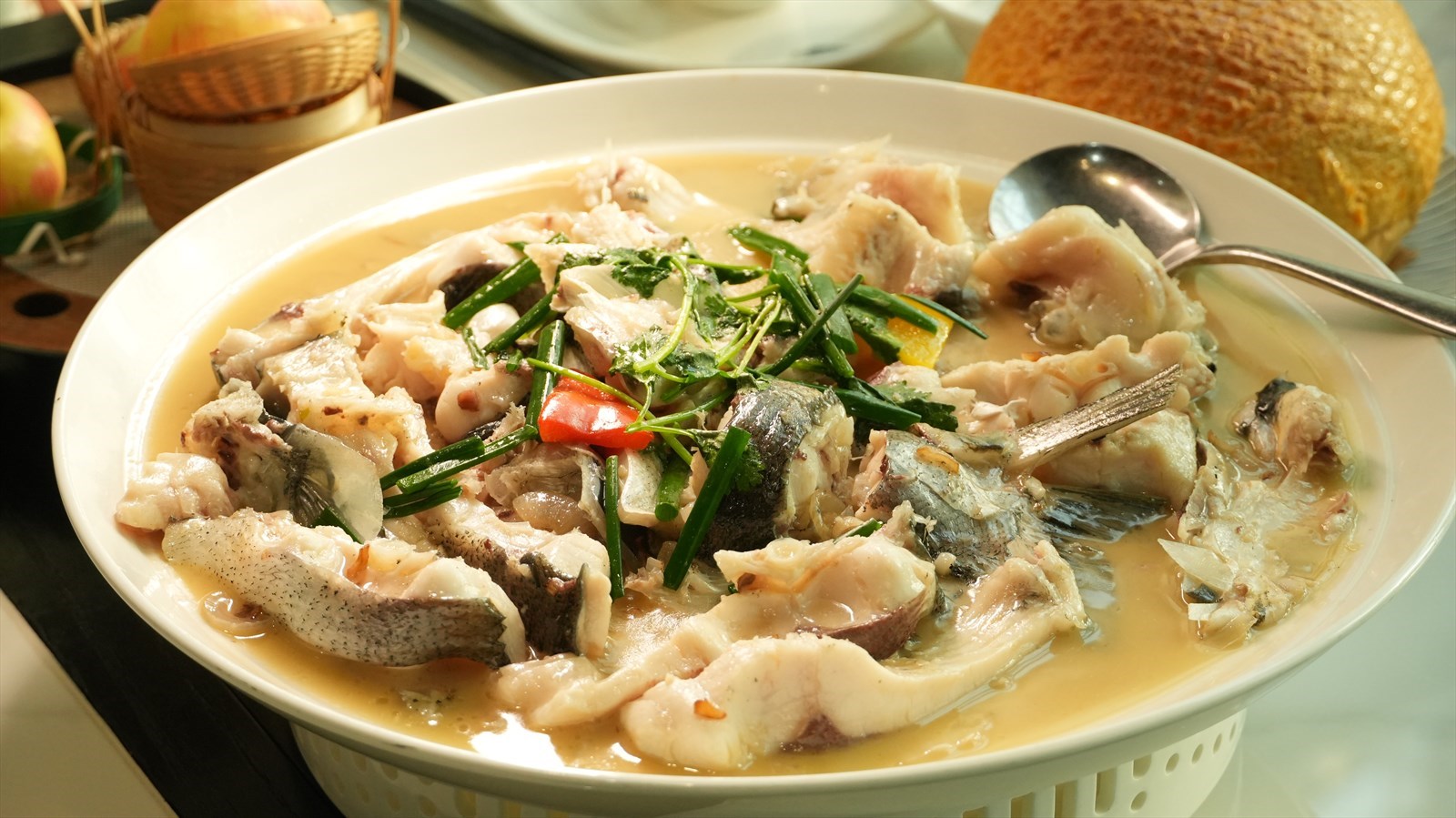 這道菜是新會司前鎮的特色美食,起源於司前鎮石名村。厨師僅用紅蔥頭、花生油、鹽搭配白水煮魚,但簡單的配料卻能最大程度鎖住魚的原生鮮味。蒸好的魚肉鮮嫩多汁,清香撲鼻,配料中雖然沒有姜,但是魚肉卻完全不腥。紅蔥頭與花生油的經典搭配,不僅適用於這道魚,用於其他白煮菜也同樣美味。