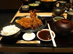 在伊势丹七楼的一家日式餐厅,白色的招牌上面黑色的字体,显得干净利落。日式的装修风格,店内面积不小,作为很多。一家以炸物为主打的餐厅,特色的就是炸猪排和炸大虾。价格小贵,人均八十元左右,基本上一个炸物套餐就78左右吧。套餐内包括一分儿炸物,一碗味增汤,一份儿米饭,一份儿卷心菜丝还有一小碟咸菜。其中套餐中的米饭,汤还有卷心菜是可以无限添加的。 猪里脊火锅饭,78元一套的套餐,端上来比较不一样,是一个小锅里面炸好的猪排,上面还撒着一个鸡蛋,蛋液覆盖了炸好的猪排,还有不少的汤汁。有一点点吃不惯吧,脆脆的炸猪排被放到汤汁里面,失去了刚出锅的炸猪排的那种外脆里嫩的口感啊。猪排里面还是很嫩的口感,就是外面那层面被泡软了不太好吃。鸡蛋口感有点老。日式火锅的汤汁,吃起来有点发甜,不习惯啊。卷心菜倒是很清爽,比较解腻。味增汤咸口的比较好喝,热热的,里面还有海鲜,味道比较浓郁,米饭就着吃很不错。店内有芝麻酱和配着炸猪排吃的酱汁,也是略微发甜的口味。 总的来说还是有些贵的炸猪排哦。偶尔吃吃还可以,味道不算太惊艳,就是感觉炸物用油应该是比较干净的,吃后口中没有什么异味。…查看更多