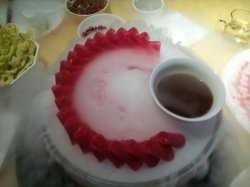 点了番茄锅,很有特色哦,放牛肉进去后,相得益彰,汤更好喝了,难得吃火锅也能喝汤,不错。其中点了祥云刺身,一大块冰上放着生牛肉,还装饰了冰做的椰子树,刚端上来,服务员向冰了加热水,顿时白色的雾就出现了,真有种祥云的感觉,很惊奇哦~查看更多