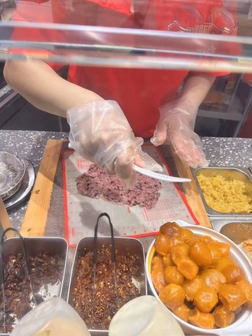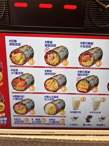 厚烧鸡排饭团 / 黑椒猪排饭团 / 辣牛肉XO酱饭团 / 黑椒烤肠 / 北海道蟹棒饭团 / 东京爆浆芝士饭团