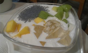 我能说满记现在实在太火爆了么,刚吃完午饭的时间段,已经排号第四桌等位中了•••艾玛,连多放几个等位座椅都不能够,果断转战津汇地下一层找别家店了。这家正好有活动,200办理会员卡,平时九折周三七折,办卡当天五折,生日当天送甜品,还有积分可以兑换,咩嘿嘿,小伙伴下单办了一张。火速点餐享受五折的美好~芒果酸奶,24米。很大的一杯,杯子还是很耐人滴,大肚杯。芒果味道很浓郁,酸奶灰常细腻,温度稍有些凉,肠胃不好或者乳糖不耐受的亲要适量饮用。西瓜汁,22米。冒冒点滴,指望着鲜榨果汁防腐剂和反式脂肪酸等等因素会递减。甜度适中,水果沫沫会比较多一点,喝起来很解渴。白雪黑珍珠,24米。小伙伴的必点餐,呜哈哈。冒实在受不了兰香子的状态和口感,密集恐惧症伤不起。挑着吃了点芒果和猕猴桃,怎一个酸字了得,好在还有奶汁,搅拌一下还是可以接受的。蒟蒻放的很多,QQ的还不错。杂果小丸子,貌似也是24米。配料基本和上一道没区别,芒果、猕猴桃、蒟蒻,加了点糯米小丸子而已。芒果汁不会特别甜,还不错,稠稠的喝起来很爽口。水果依旧很酸~服务还算不错,可是这么小的封闭空间怎么可以不禁烟,而且还是吃甜品的地方,虽说也售卖茶点之类,但毕竟不是中餐厅吧~隔壁桌的妹纸各种狂抽,闹哪样啊这是~无好感,不会再去。