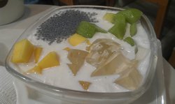 津汇楼下的这家店开的时间挺长的了,算是甜品店中的先驱吧,以前很火,每次过的时候里面都是人满为患,现在甜品店已很常见,客流不如从前了,周末到的比较早,11点的时候里面只有2桌,坐的是沙发座椅,很舒服,但是店面真的很小,紧凑的摆着桌椅,很是拥挤黑糯米甜甜,很喜欢,糯米团很Q,甜甜的很好吃;西米捞,不是很喜欢,芒果挺酸的,总体偏凉,杨枝甘露很甜;恋恋至尊够大,里面的水果很好吃,不过本人不喜欢芒果,芒果口味的东东还可以接受现在总有团购,价位很合适,可以再尝试