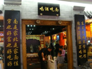 装修很有特色,典型的老北京的味道,服务员穿的也很复古,东西也很复古,有点儿老北京店小二的赶脚。经常过去吃个炸酱面啥的,面条很劲道有嚼劲,而且量大料足,吃起来感觉不错,中午的时候经常有很多附近工作的人过来吃饭,因为他家比较经济实惠,而且口味又好,又有特色,一碗炸酱面,一个小菜,足够吃的了,而且吃的饱,吃的好。