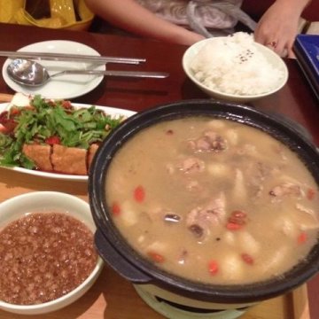 一茶一坐这家店也算小有名气,近年来在很多热闹的地方都开了店面.这家店开在锦尊路上,这里交通非常方便.这家店面不大,但是店内环境整洁,服务员也很热情.这家店离单位比较近,所以经常会和同事光顾这里吃午饭.个人比较喜欢它家的排骨土豆煲,非常适合在这个季节食用,排骨选用了猪肋排,排骨炖的很酥也很入味,里面的土豆吸收了排骨的鲜美,土豆软糯,非常美味可口.它家的价格也不贵,属于非常不错的选择.