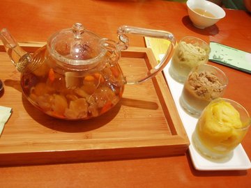 周末逛凯德MLL购物中心3楼,看见这家店就在这里吃的,环境还不错,很幽静,人也不算特别多。因为不是特别饿,所以点了一些小零食。非常推荐他家的茶酥,抹茶口味的,口感跟桃酥似的,但是不是特别甜,抹茶的香味挺重的,有点曲奇的味道,但是奶香味不浓,还有点微苦,吃着一点不腻。价格不贵,2人消费110元不到。