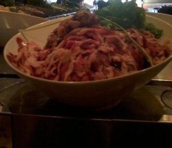 自助式的小火锅,做在巴台上就可以随时的选择不口口味的食材了,荤的素的,各取所需,传送带的滚动也时不时的刺激着那些活跃的胃.木耳是大片大片的,所以很实惠,而且厚实滴很,吃起来也决对是让你回味悠长的,即使多涮一会也不会感觉到软烂,一直的保持着韧性。查看更多