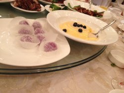 公司年会在这里,在城隍庙旁边,叫万丽轩吧。。。。摆了十桌,地方有点嫌小,前面有一个主席台,主席台更小,可以表演节目外面还有一个小厅,可以放道具等等菜么点的不多,就是酒席常见的菜式。。。。冷盘10来个,腌萝卜、酱鸭舌、蔬菜色拉、牛肉、熏鱼、口水鸡等等。。。。热菜10来个,上汤笋片、红烧猪蹄髈、其他的忘记了。。。。另外还有点心和酒水,红酒是我们自带的,橙汁是酒店的,不是鲜榨的,酸的很,不好喝。。。。味道一般,那个猪蹄尤其的不好吃,一点味道都没有不说,连咸味都很淡,真心难吃啊。。。。不合算噢。。。。查看更多