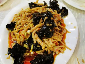 他家环境不错,而且有几个菜非常好吃:酸辣凉粉,凉粉其实不像凉粉倒像是凉皮,非常的劲道,调的汁让人惊艳。酸的柔和醇厚,甜的悠然深远,辣的不急不燥,香的沁人心脾。同样的汁又造就了另外一道好菜:口水鸡,有这样的汁我对鸡肉没有要求~~要不是请客吃的饭,我一定把这两个菜的汁全部打包带走,回家下点面条一拌。艾玛~~我的口水都流出来了。黑椒牛仔骨,牛肉扎实有弹性有嚼头,酱香浓郁,咸甜入味,加上黑胡椒的衬托,更是锦上添花。吃着吃着,让我想起了椿和的酱牛肉来。剁椒鱼头,鱼头不错,剁椒和辣油品质一般,辣的浮燥,好的辣椒吃下去不会呛不会冲,慢慢的辣味才会浮现起来。田螺塞肉,普通的肉圆穿了个马甲它还是普通的肉圆。