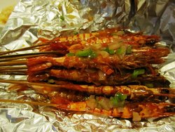 自从小南瓜的推荐后,艳阳天成了我家家庭聚会,朋友聚餐首选之地啦!这次重点来评价下特价后108元的椒盐串串虾,108一份的价格,虾子用的都是基围虾,应该是活的时候串起来,然后在撒上作料包上锡纸碳烤的~喜欢吃烧烤的人肯定觉得很不错!不过个人觉得新鲜的虾子用这样的烹饪方式有一丢丢浪费食材哈!