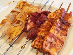 难以忘怀这里的美味烤串又来光顾,友谊新天地B座2层,上扶梯及时店里依旧窗明几净,操作间里服务员正在帮客人烤串、备料菜品:金针菇培根卷,培根本身就有很香的味道提前腌制裹了,但是偏咸,裹上金针菇后刚好中和味道,金针菇清脆培根有嚼劲,刷上甜咸口味的酱料很美味。烤羊肉串,菜3元一串,肥瘦相间,肉质好,在眼前的烤炉上听到肥肉被烤得吱吱香,冒出羊肉香气,让人馋涎欲滴。这里还有串串香,放在小锅里一起端上来,都是细细的竹签子串起来涮的,拴好很方便提出锅来吃。最好吃的还是鱼豆腐,鲜香味加上麻辣味好吃得停不下来。冰冻情人果,据说是青芒果肉做的,特别有嚼劲,冰冻过后吃起来冰霜酸甜,是很好的凉菜。烤鱿鱼,这道是后厨帮忙烤的,边烤便刷酱,鱼肉被烤得很嫩了,酱料也有甜口很好吃。这里吃烧烤还赠送小菜,都是朝鲜风味的泡菜,萝卜最好吃,咸辣适中。…查看更多