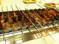 难以忘怀这里的美味烤串又来光顾,友谊新天地B座2层,上扶梯及时店里依旧窗明几净,操作间里服务员正在帮客人烤串、备料菜品:金针菇培根卷,培根本身就有很香的味道提前腌制裹了,但是偏咸,裹上金针菇后刚好中和味道,金针菇清脆培根有嚼劲,刷上甜咸口味的酱料很美味。烤羊肉串,菜3元一串,肥瘦相间,肉质好,在眼前的烤炉上听到肥肉被烤得吱吱香,冒出羊肉香气,让人馋涎欲滴。这里还有串串香,放在小锅里一起端上来,都是细细的竹签子串起来涮的,拴好很方便提出锅来吃。最好吃的还是鱼豆腐,鲜香味加上麻辣味好吃得停不下来。冰冻情人果,据说是青芒果肉做的,特别有嚼劲,冰冻过后吃起来冰霜酸甜,是很好的凉菜。烤鱿鱼,这道是后厨帮忙烤的,边烤便刷酱,鱼肉被烤得很嫩了,酱料也有甜口很好吃。这里吃烧烤还赠送小菜,都是朝鲜风味的泡菜,萝卜最好吃,咸辣适中。…查看更多