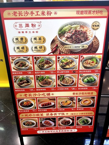 老长沙手工土猪肉粉 / 老长沙臭豆腐 / 辣椒炒土猪肉粉 / 老长沙肉末拌粉 / 酸菜牛腩粉 / 土鸡蛋炒肉粉
