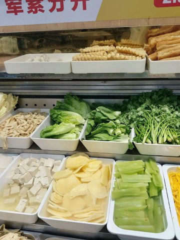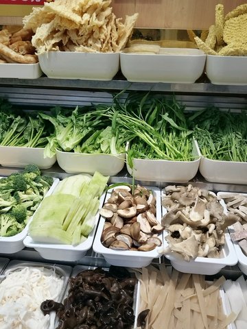 嫩牛肉片 / 小白菜 / 黄骨鱼 / 西洋菜 / 油面筋 / 刀削面
