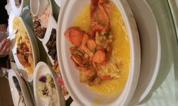 上海大饭堂这家店是单位请客光顾的,这家离单位比较近,所以经常有些活动就会安排在这里。这家店内环境幽雅,服务员也很热情。比较喜欢它家的铁板煎虾,选用了新鲜的基围虾,每个虾都开了背,上面撒了芝麻和青葱,这样在铁板上烤后更入味好吃,虾肉入口弹性十足,非常好吃。查看更多