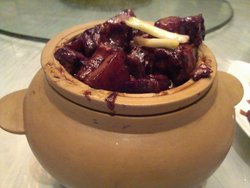 小南国的红烧肉挺好吃的,是放在一个砂锅里面,端上来的时偶扑扑满,浓油赤酱色泽鲜亮,十分诱人。夹起一块红烧肉,大小适口,肥瘦相间。肥肉部分香而不腻,瘦肉部分酥而不烂,一块接一块的,配一碗米饭越吃越想吃。