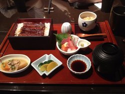 东京和食在外滩六号里面,环境自然是没得说的,中午吃的是鳗鱼套餐,套餐里面的东西挺丰富,还有各种的小菜,不过重点就是当中的鳗鱼了,鳗鱼是和米饭分开盛放的,显得很厚实也很大块,上面浇淋的酱汁咸中带甜,很是入味,肉质也很嫩香,套餐里面的味增汤我也很喜欢,味道很鲜而且不腻。…查看更多