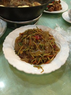 东北菜味重,量大,很喜欢吃的。地三鲜看着就很想吃,油多,这才还真得要油多,不然做不出那味道,也不好吃,土豆是先炸后炒的,外焦里嫩的,像薯条,很爱吃。东北大拉皮的粉皮很粗很宽,吃起来也特别有嚼劲,配上芝麻酱,黄瓜条,爽口。猪肉炖粉条,很够味儿,粉丝也很入味了,猪肉烂烂的,很香。价格又很实惠,很不错。肯定能吃的很饱,哈哈。查看更多