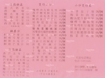 菜单/外卖纸