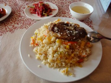 来深圳已经好几个月了,好怀念新疆的烤羊肉、手抓肉、大盘鸡..........。可惜都吃不到了,最近发现东门有家新疆饭馆,就来解解馋,呵呵..............这里的手抓羊肉味道很不错,不是想象中的那么膳,和新疆的差不多。烤羊肉串的味道还算可以,但上面的肉丁小的可怜,比起当地的差远了,好怀念之前自己在家烤烤肉的时光,酸奶味道不错,就是价格太贵,这要是在新疆10元可以买好多,在这里茶位要5元每位,纸巾、小菜(花生米和包菜)还要收费的,碟子很小,还2元一碟,简直是抢劫,这个在新疆的餐馆都是送的