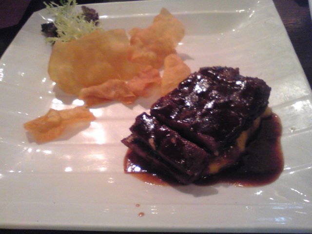 中森的店就是大,空间是相当的开阔。菜谱有分会员价和非会员价,还有一些打特价滴。秋刀卷天妇罗33元:秋刀鱼卷起来,中间放红罗卜块,炸过的。摆盘是蛮漂亮的,但好多细刺,吃起来要相当小心。中华海草18元:淋上芝麻,香油。看上绿绿的,非常有食欲。法国鹅肝沙律28元:青菜加上配料酱是蛮好吃,香滑下口的,但鹅肝的味道真不喜欢,怪怪的,还是煎鹅肝好吃。古埃及牛柳28:牛柳上面有些芝麻,但牛柳好咸啊,牛柳下面的番薯泥倒很香,感觉象烤过一样的。每区都有个服务员服务的。查看更多
