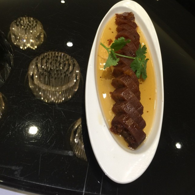 新开的餐馆,原来是美林阁。装修好之后,感觉上了一点档次。预订了初三的家庭聚会,还买了张他家的会员卡,五百大洋就这样白白给了商家。看着可以打八折的份上,就下手了。上去挑了一间包房,卫生间和衣帽间的设计都不错,也很亮堂。当天去点菜的时候就觉得不舒服,因为还没点菜,这个点菜员就一个劲地提醒说一定要点菜点到2000元,包房的最低消费。虽然我点菜其实一定会超过这个数字,一是我预订的时候没有人跟我说过,二是这个服务员的态度实在是令人不快。大过年的,也费时和她计较。点的基本上都是他家的招牌菜。因为家里很多都是宁波人,所以应该都对胃口的吧。他家有十大名菜,我点了其中的:安吉竹林鸡:冷菜来的,应该算是走地鸡吧,皮倒是黄黄的,旁边配了酱油,量其实不多的,半只鸡吧,大概。金汤白米虾:白米虾很小个的那种,用金汤煮的,汤底倒是很鲜,不过汤底的味道貌似盖过了白米虾的鲜味。葱油海瓜子(¥98):分大份小份的,因为人多,所以点了大份的,价格真心不便宜,海瓜子个头不大,不过倒算干净,没有泥沙之类的。椒盐龙头烤:新鲜的龙头烤,蛮嫩的,一口咬下去,肉就在嘴巴里融化开来,咸淡正好。丰收日红烧肉:这个和其它饭店的放在坛子里的红烧肉有所不同,没有百叶结,也没有卤蛋,不过肉烧得很酥,有肥肉有精肉,连着皮。酒香大香鱼(¥198):应该是用酒浸了一段时间,酒香渗入了鱼肉当中,虽然不知道香鱼是什么类的,但是吃下来也不逊于黄鱼,别有风味。特色酥豆煲:因为是特色菜所以点的,但不知道为什么剩下很多,希望是其它好吃的菜太多吧。酥豆煲有一种烤过的味道,比较特别。还点了葱油膏蟹,不过最后还不上,去催,服务员才告诉我卖完了,幸好我其它菜点得多,不算失礼,不然真的挺难看的。服务还是要跟上啊!其它的没有列入特色菜的,我最喜欢的就是生蚝,一个一个很大个,也很新鲜,淋上柠檬汁,蘸点芥末,爽。黄油焗龙虾:¥258/斤,弄了只2斤2两的,分量真的只有他们自己知道了,龙虾下面不是伊面,而是乌冬面,也OK啦。还喜欢他家的点心拼盘,放在下午茶类的两层盆子里面一共有二十四件,八种不同的品种,每个品种三个,喜欢吃什么就拿什么咯。有核桃酥、花生酥、米馒头(也是他家的四大名点之一)等等。
