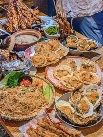 蜜汁烤鸡翅 / 蒜蓉烤生蚝 / 香辣章鱼须 / 招牌桂花蜜汁鸡翅 / 鸡脆骨 / 现熬砂锅粥