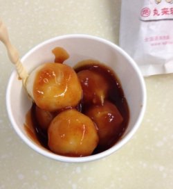 咖喱丸和辣鱼丸都是我喜欢的呀,首先咖喱的味道还蛮香的,带有点甜味,而且丸子弹性十足很Q,还有辣鱼丸,可能是因为煮到现在很入味的关系,刚咬一口就觉得丸子味道辣辣的很给力,而且鱼丸本身的味道就带有一点鲜香味的,所以无论从味道还有口感上面来说都是挺好吃的。