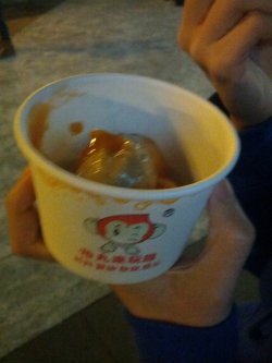 每次都在地铁口附近看见他家的身影,主打买的各种口味的丸子,其实我是不喜欢这种东西的,感觉就是和超市里海霸王之类的丸子差不多。有次实在饿得发慌,周围又没有其他选择,就买了他家的丸子,因为煮丸子的调料比较重,所以吃起来感觉还蛮鲜的,一盒子的丸子瞬间被我消灭了。