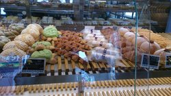 一直都是小伙伴们很心水的甜品店,据说服务各种到位什么的。这次去倒是没觉得服务有多到位,是周日的中午,说实话人不少,交钱需要排队啊,对一家不是传统的糕点店来说挺不容易的。然后唯一一个来回送面包什么的mm态度有点急,也没给我好好介绍,算了我自助好了。买了泡芙各种,因为看到泡芙买三个有优惠,就买了三个榴莲的,还买了一盒香草的,都很受欢迎。榴莲的味道非常浓,而且料也足,一大口吃下去对于一个喜欢榴莲的人来说简直就是天堂了。灌榴莲馅儿的美眉态度倒是很好,一点也不急躁。香草的也好吃,甜而不腻,而且一大盒也很便宜,下次可以去尝试其他造型可爱的面包。…查看更多