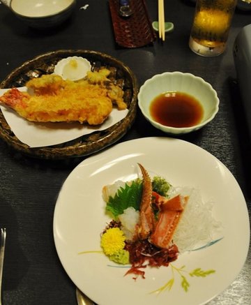 九井日本料理他家环境挺好的,搞活动,打八折,我和闺蜜一起去的,雪蟹腿刺身很鲜美,腿肉很厚实的,还有帝王蟹腿天妇罗,超级赞的,一般帝王蟹是生吃,做天妇罗很奢侈哟,一顿吃了300多