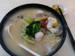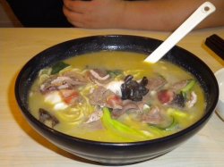 他家的鱼汤面还不错,至少从端上来就给人一个有食欲的感觉,黄色的那种浓浓的汤色加上猪肝腰花香肠,和滑滑的鱼圆配合青菜和蛋,一碗满满的端上来真心让人食指大动啊,,价格嘛算不上便宜,不过他家的鱼汤说是都是鱼熬制的,我喝起来有加牛奶,所以才会这么白,牛奶的添加会有些腥味,不过基本上是吃不太出来的,吃起来非常有劲道的面条,和分量十足的配料,我是一碗吃不完的,把菜捞捞干净就可以咯,所以总的说来不错…查看更多