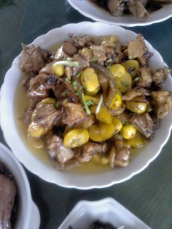 这家店的风格就是园林式的风格啊,一进去就感觉豁然开朗,蛮舒服的这里的特色就是吃农家菜,都是些土生土长的菜和自己饲养的家禽、鱼类今天点了一个板栗烧土鸡,蛮不错的,土鸡据说是店里自己养的,板栗是英山罗田的那里盛产板栗撒。感觉板栗蛮甜的,特别是跟土鸡红烧以后,香甜可口土鸡入味很好,全部都烧得蛮烂,很滋补人的一道菜啊