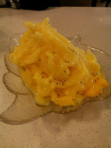 逛街逛累了,好友说以前吃过这家,就进去了,这家店挺小的,点了芒果冰沙和抹茶红豆班戟,芒果冰沙量好大,象座小山,上面还有一粒粒的明列子,底下有几块芒果,冰沙挺细腻的,芒果味也挺浓,而且不是很甜,抹茶红豆班戟和好友一人一个,外皮是抹茶味的,冰冰的,里面有奶油,觉得味道还可以吧,吃了也不腻。…查看更多