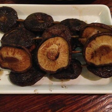 炸豆腐朋友强烈要求点(潮州人,你们懂的),whatever啦~,外脆里嫩,还不错~~噔噔噔噔噔噔噔噔~~~啤酒配烧烤,还是好闺蜜啦~~~烤生蚝冒着烟上桌的,生蚝还算肥啦,就是有点小只啦~蒜蓉给好多,如果可以加点辣味就更赞了。烤香菇菌类是我的至爱之一,香菇怎么做都好吃(个人喜好)。其实烤出来的香菇,是不需要调味的,就淡淡的盐味淡淡的孜然味儿,然后就是浓浓的香菇味儿
