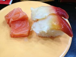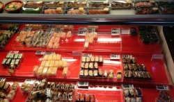 在超市一楼,路过,就顺便吃了点儿!人挺多,显的有点小拥挤的感觉!有一个转盘,四周旋转的,上面有各种吃的,喜欢吃什么自己就直接拿!价格是按盘计算的,一盘6块钱,量是没有多少,但挺方便的!生鱼片寿司和刺身是需要另外点单的,好像是因为最新鲜的,是现做现切的!一般就2个,放了几个,就给你几个小盘子,到时候它们是根据盘子的多少一起算的!三文鱼,吃口不错,鱼片很嫩,就是放的芥末酱太辣的,不适合,还是蘸点酱油吃吃好了!:)查看更多