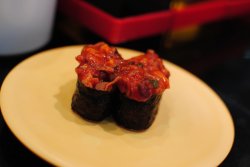 要是嘴巴馋想吃寿司,而且囊中羞涩的话我就会选这家店,他家的特色就是便宜,当然味道也就一般般啦,随便吃吃还是可以的.他家的东西也就1.2.3块那种的,一块基本看不到了,3快的不错,因为是上面有鱼类的,反正4.50块差不多能饱了.查看更多