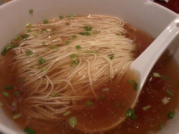 工作日午餐,同事推荐巴黎春天上的这家店,每天都有特价面,周一是鸭腿面,是同事强烈推荐的。3个女孩子,一人点了一份鸭腿面,另外还点了半斤白斩鸡。鸭腿和面条是分开上桌的,面条细细的,汤水带有猪油的味道,蛮香的。鸭腿是油炸过再卤煮的,上桌还切开来了,吃起来很方便。味道有点甜甜的,上海本帮口味。白斩鸡很嫩,味道也很不错。:)