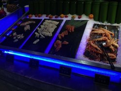 好久没有吃自助餐了,这次来大吃一顿。中午团购去的,99一个人,晚上的价钱就会贵一点。他们家真的不错哦,又可以烧烤又可以吃火锅。都是海鲜,有三文鱼、甜虾、北极贝什么的。烤肉种类也很多,有羊排什么的,还有五花肉,都很新鲜。阿根廷红虾一定不能错过,个头还蛮大的。吃完以后记得还要最后吃个冰淇淋再走,味道不错的呢~拿的时候最好不要浪费,不然要罚款的~