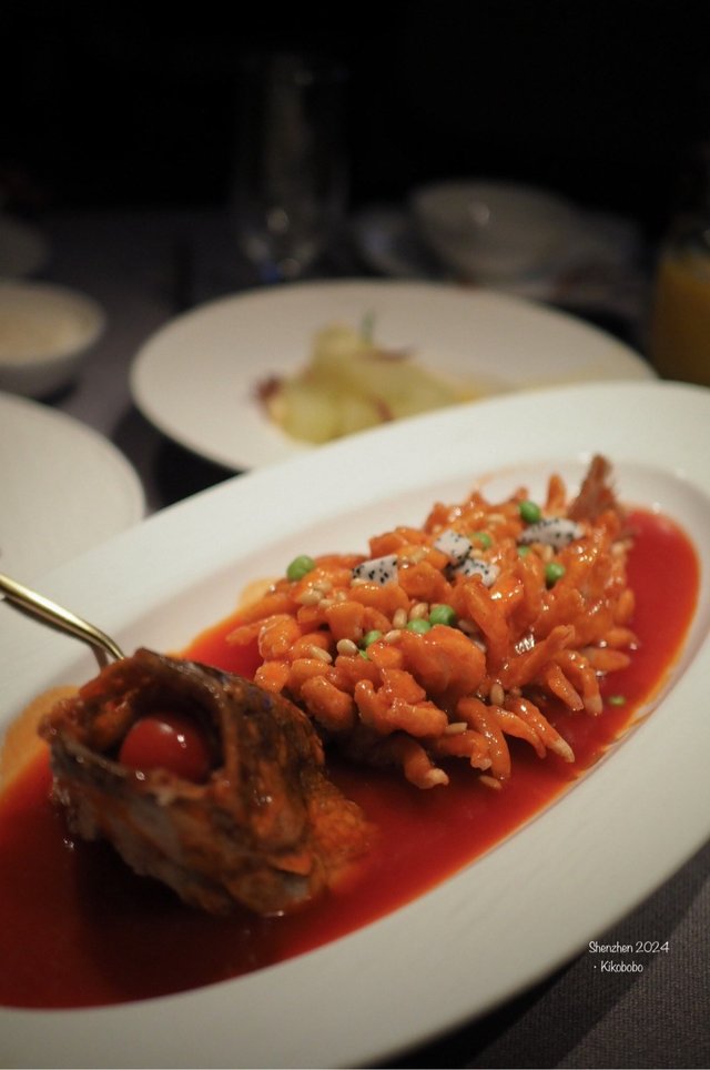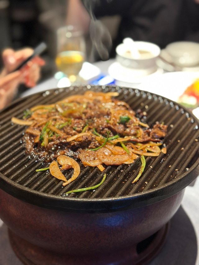 無意中看見有關”京炙坊”的post,被相片吸引了過來,原來這家是社交平台必吃榜上榜餐廳,主打北京烤鴨。我們點了幾款前菜:麻醬菠菜(CNY ¥32),嫩綠的菠菜包著麻醬是能想像的味道,作為開胃涼菜不錯,想不到賣相亦精緻。風干鴨舌(CNY ¥68)咀嚼時,鹹香伴隨著微辣,帶點煙薰香氣很是惹味。四海米醋海蜇花(CNY ¥58)酸中帶甜,有點驚喜底下有雪梨絲墊底,一口海蜇一口雪梨爽爽脆脆味道又搭。火腿蒸蟹肉冬瓜(CNY ¥78)蟹肉存在感不高,金華火腿能帶起冬瓜的鮮甜味,不錯。主食方面:寧夏滩羊手工羊肉 (CNY ¥88 小份)(含空心芝麻燒餅2個)連鐵版上桌的烤羊肉,香噴噴熱辣辣,伴炒著洋蔥和特製醬汁,外焦內嫩,羊酥味不算太重,喜歡羊的必點。京炙酥不膩文房烤鴨 (CNY ¥268 1隻)(含二份鴨餅、四位蘸料)吃烤鴨的指定動作,當然是師傅會在桌前”片鴨”,能好好欣賞一下師傅的刀功,片好的鴨皮伴隨薄薄的鴨肉,油潤光澤,外皮烤得香脆,肉質保持鮮嫩,鴨肉香氣濃郁,值得一讚是蘸料中,除了基本的蔥絲、甜麵醬,還有哈密瓜絲,和百香果醬,夾著面皮一起吃,口感層次更豐富,讚👍🏻。宮廷松鼠魚(CNY ¥158)魚身經過精心切割,呈現出松鼠的形狀,炸得外脆內嫩,色澤金黃,魚肉的鮮美和醬汁的酸甜搭配得出色。糖醋里脊 (CNY ¥68)初時以為和咕嚕肉差不多的菜色,豬里脊肉炸得酥脆,包裹用糖煮至溶化後調成的醬汁,吃下覺得竟然帶點焦糖香氣,好喜歡這個味道。整體以人均不用¥200來說,價錢和質素性價比很高,絕對值得一試。…查看更多