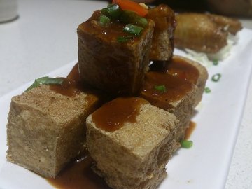 现在都很少过来这里了,以前就经常来喝下午茶的....其实我过来都是 因为这里的环境,觉得确实是比较舒服的,特别是那种秋千位置的设计,很好的理念,也让人感觉很舒服。现在秋冬都有相应的饮品,好像桂圆红枣茶,这个味还是可以的,热热的,入口比较清甜,喝完,感觉人也暖了,比较舒服。炸豆腐是这里的招牌,其实也基本还是以前的味吧,豆腐外脆脆的,里面就比较嫩的那种,而入口的时候还是有种比较空洞的感觉,但这里的酱汁是比较特别的,我感觉有点辣,但吃起来也确实香。